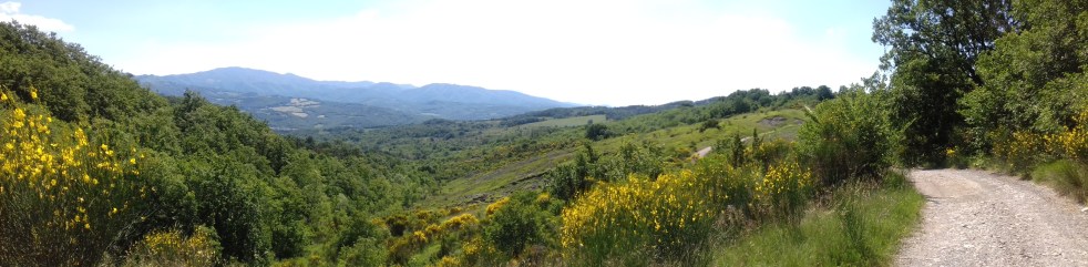 Wenn wir nämlich den heiligen Berg hinter uns lassen und uns in die weite Hügelwelt Richtung Caprese Michelangelo begeben, offenbart sich uns ein unerwartetes Schauspiel: Wir sind mitten in die Ginsterblüte hineingelangt mit unserer Vorbereitungstour. Die kräftige gelbe Farbe und der süßliche Duft des italienischen Ginsters hinterlassen starke Eindrücke: Über das Sehen und Riechen gelangen wir in die Gegenwart des Außen.