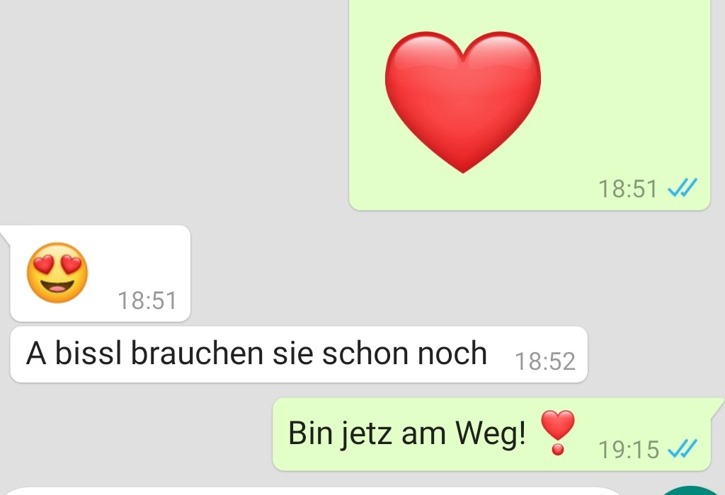 Mehr Mut zur Liebe offenbart nach meinem Empfinden auch die Nutzung der digitalen Text-Nachrichtendienste. Wem ich in den grauen (?) Zeiten noch vor der Email oder SMS niemals ein Herz an das Ende des Briefes gemalt hätte, der oder die bekommt heute schon mal ein Herz in der Textnachricht. Der Grad des Muts bzw. die Frage nach der Angemessenheit, dem Maß, entscheidet sich nicht selten an der Wahl der Farbe: ein weißes, ein grünes oder sogar ein rotes Herz?