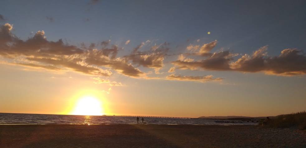 Was, wenn wir uns klar machen, dass wir 4,5 Milliarden alter Sternenstaub sind, lesen wir weiter: Wenn wir uns dieses kosmische Geheimnis bewusst machen? Wenn wir voll Ehrfurcht vor einem 200 Jahre alten Gemälde oder einem 1.000 Jahre alten Gebäude stehen können, können wir uns wenigstens mit derselben Würde auch selbst im Spiegel betrachten? An diesem Tag, vor dem alltäglichen und doch so geheimnisvollen Schauspiel des Meeres und der Sonne gelingt das. Die Welt ist ein Wunder. Wir Menschen sind Wunder. Jede*r von uns.