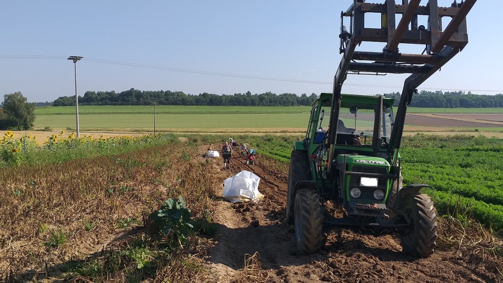 An diesem Wochenende müssen die Kartoffeln raus. Viel zu früh eigentlich im Jahr. Doch die Braunfäule macht sie zunichte, wenn sie jetzt nicht geerntet werden. Der Aufruf an die Mitbauern der Solawi (= ein Projekt der „solidarischen Landwirtschaft“) kommt kurzfristig. Aber so ist das in der Landwirtschaft. Und es kommen trotz der kurzen Frist viele. Genug, dass wir es am Ende wirklich schaffen, die Kartoffeln alle herauszuernten. Der Ertrag für alle Mitbauern über den ganzen Winter. Doch der Reihe nach.