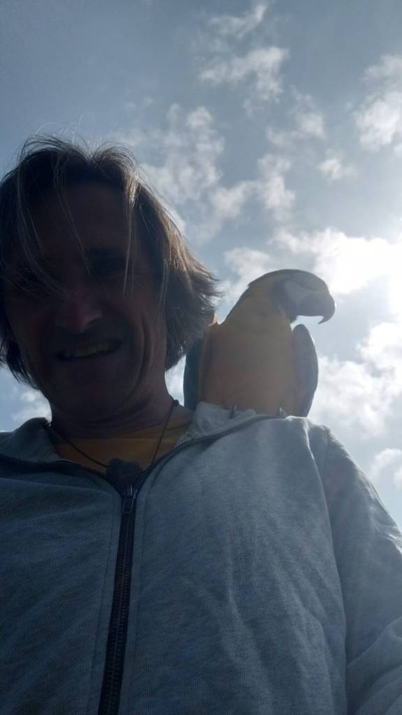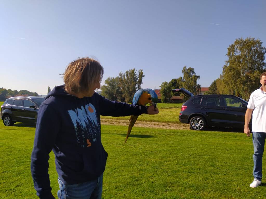 Als der Besitzer der Vögel dann doch langsam die Heimreise antreten möchte, muss er den Kerl mit Engelszungen bequatschen, dass er herunterkommt und sich wieder mitnehmen lässt. Faszinierend, dass es ihm überhaupt „folgt“. Doch die Tiere sind den Besitzer von klein auf gewohnt. Haustierhaltung eben. Statt Hund oder Katze eben Papageien.