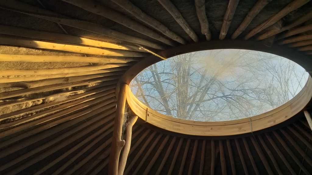 Das mittig ausgerichtete runde Fenster in der Jurte, in der wir wohnen dürfen, erinnert mich an die Rotonda des Pantheon in Rom – mein Lieblingsgebäude in der ewigen Stadt. – Foto: Christian Heitzer-Balej