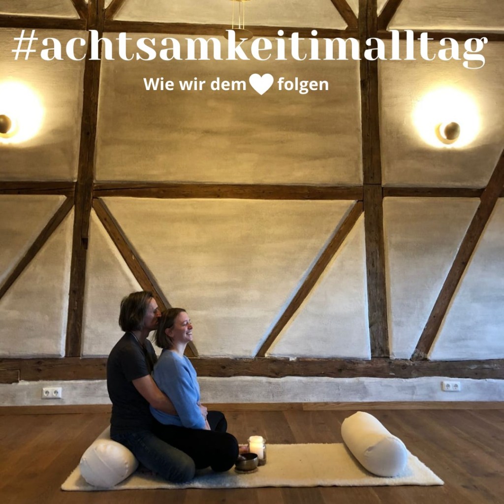 Und natürlich sind auch wir nicht in jedem Moment achtsam. Auch wir vergeigen mal eine Begegnung und verlegen den Schlüssel. Sind in Gedanken versunken und nicht bei der Sache oder bei unserem Gegenüber. Auch wir fetzen uns mal als Paar und vergessen alles, was wir geübt haben. Auch wir verpassen Hochs, üben uns in Widerstand gegen Niederlagen, Schmerz und frustrierende Momente. Und doch wissen wir: Es gibt immer neu die Möglichkeit, zurückzukehren in die Spur des wachsamen Wahrnehmens und nicht Bewertens. Den On-Schalter des Lebens drücken und damit das kleine und große Glück wieder entdecken. Die kleine und manch große Erkenntnis gewinnen. Und durch Schmerz und Leid hindurch neue Räume betreten und innerlich wachsen.