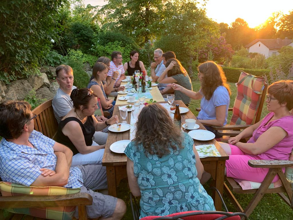 Der Schritt in einen Weg miteinander bedeutete für uns auch, ein fast völlig neues soziales Netz aufzubauen. Von heute aus gesehen war das auch eine große Chance: Auf neue Weise Gefährtinnen und Gefährten um sich zu sammeln. Herzensmenschen. Menschen, die unseren Schritt, dem Herzen zu folgen, nicht abgelehnt hatten. Und herzoffen für neue Kontakte haben wir neue Freunde gefunden. Wir klagen nicht über die Welt, „die Gesellschaft“, die Zeit, in der wir leben. Und wenn sie noch so kompliziert und herausfordernd geworden ist. Wir umarmen sie. Wir haben in den letzten sieben Jahren so wundervolle Menschen kennengelernt und heute so wunderbare Freundinnen und Freunde um uns. Das lässt uns immer wieder staunen und von Herzen dankbar sein.