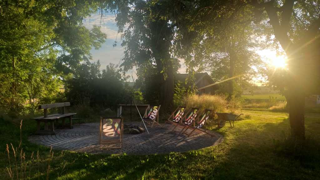 Am nächsten Tag laden wir unsere Seminarteilnehmer*innen vom Freitagsworkshop „Yin Yoga & Meditation“ zu einer Einheit auf der Schlosswiese ein. Eine Frau setzt sich in die bereitgestellten Beach-Stühle und es purzelt aus ihr heraus: „Wie im Paradies… So, stell ich mir vor, ist es im Paradies.“