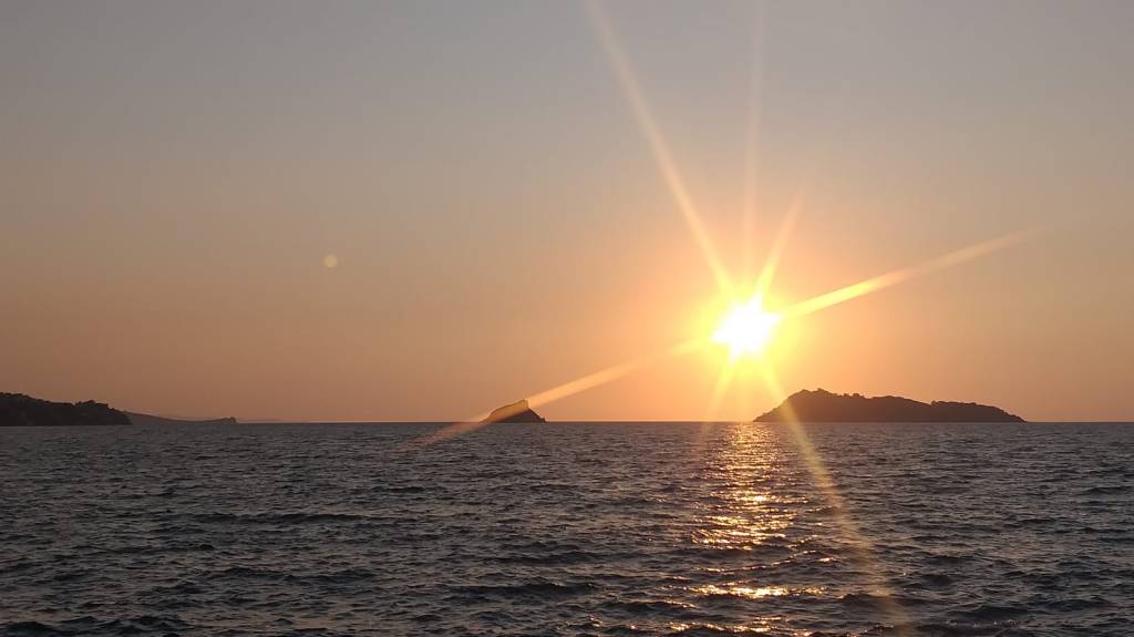 Doch nicht nur deshalb ist für mich solches Reisen eine wahrhaft „große Sache“. Die durch einen Flug etwa so krass verkürzte Reisezeit macht die Geist-Seele, unser mind & heart in der Regel nicht mit. Wir brauchen ein paar Tage, um „hinterher“ zu kommen. Mit unserem Kopf und unserem Herzen dort anzukommen, wo der Körper schon ist. Wir erleben, wie uns allein die Fährfahrt hilft, die Nacht durch auf dem Schiff und der grandiose Sonnenaufgang in der Früh auf dem Meer, die zwei Stunden, wo wir – so ist die Empfindung auf einem Schiff, selbst wenn sich die Fähre „superfast“ nennt – behutsamer anzukommen.