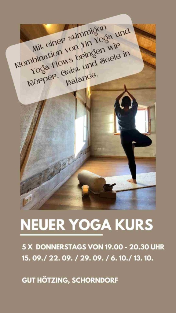 Am kommenden Donnerstag startet ein neuer Yoga-Kurs von Nicole Katharina auf Gut Hötzing. Erstmals verbindet sie hierbei die tiefe Kraft des Yin Yoga mit sanften und nicht weniger kraftvollen Yoga-Flows. Es gibt noch freie Plätze! Noch mehr Raum für gute Energie und Verbundenheit gibt es bei unserer Auszeit auf Gut Hötzing vom 3. bis 5. Oktober. Alle Infos und mehr über uns unter www.cordat.org!
