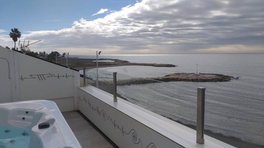 Der Flug nach Málaga geht über drei Stunden und bringt uns vom Osten durch den anbrechenden Abend ziemlich weit in den Südwesten Europas. Dorthin, wo es Palmen gibt und wo schon ein Hauch von Sommer sein soll. Tatsächlich kommen wir bei Regen an und gar nicht so sommerlichen Temperaturen. Gegen halb Zehn checken wir im „La Chancla“ ein. Das kleine Hotel, das gerade mal acht Zimmer hat und übersetzt „der Flip-Flop“ heißt, liegt wirklich direkt am Strand und erweist sich als Schönheit in jeder Hinsicht. Da wir seit dem Brunch in Prag nichts mehr gegessen haben, sind wir hungrig und haben das Glück, so gerade noch die vorzügliche Nachos serviert zu bekommen – spontan ganz unvegan mit, sorry: sau-leckerem Pulled-pork.