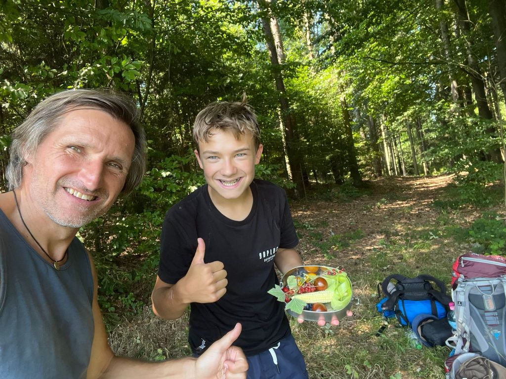 Wir starten am Montag gegen Mittag unsere Outdoor-Woche, mein Sohn Samuel und ich. Meine Liebste setzt uns in der Stadt ab, wo wir noch letzte kleine Einkäufe machen. Der Rucksack wiegt jetzt schon wie Bombe. Samuel meint: Was essen wir eigentlich zu Mittag? Diese Teeneager-Frage war zu erwarten. Was er denn möchte, frage ich. „Döner“ bzw. „halt was, das herhält“, meint er und möchte wissen, wie es bei mir ist. Also ich ess sicher keinen Döner jetzt, sag ich. Spätestens seit Nicki mir die Tage wieder was von (fehlendem) Prana* in Lebensmitteln erzählt hat.