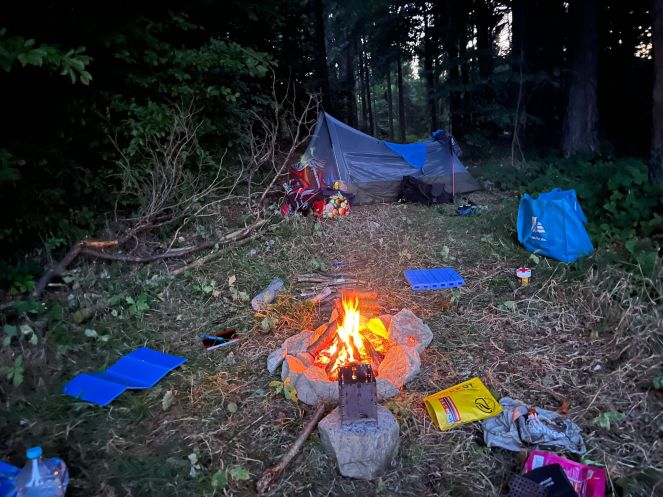 Das Essen wird auch im Verlauf der Woche – bis auf Ausnahmen – nicht mehr der große Prana-Träger werden. Das Draußen-Sein, das Sitzen am Feuer, das Baden im See und im Fluss, die viele frische Luft, das Gehen im Wald, das Schlafen im nach oben offenen Zelt (wir lassen in regenfreien Nächten das Außenzelt einfach weg), reichlich Sonne, der Sternenhimmel und die Erlebnisse und Begegnungen fluten uns jedoch geradezu mit Lebensenergie.