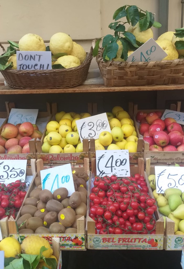 Zum Frühstück serviert uns Angela am nächsten Morgen auf ihrer Terrazza mit vista mare neben dem in Italien üblichen Cornetto auch frutte fresche und – jetzt macht es ein nächstes Mal Klick im Gehirn – „Caprese“. Mozzarella also mit Tomaten. Erfunden, si claro, in „Capri“, die capresische Form also Mozzarella zu servieren: mit Tomaten, Olivenöl und frischem Basilikum und übrigens ohne Acetto Balsamico, was offenbar eine deutsche Erfindung ist.
