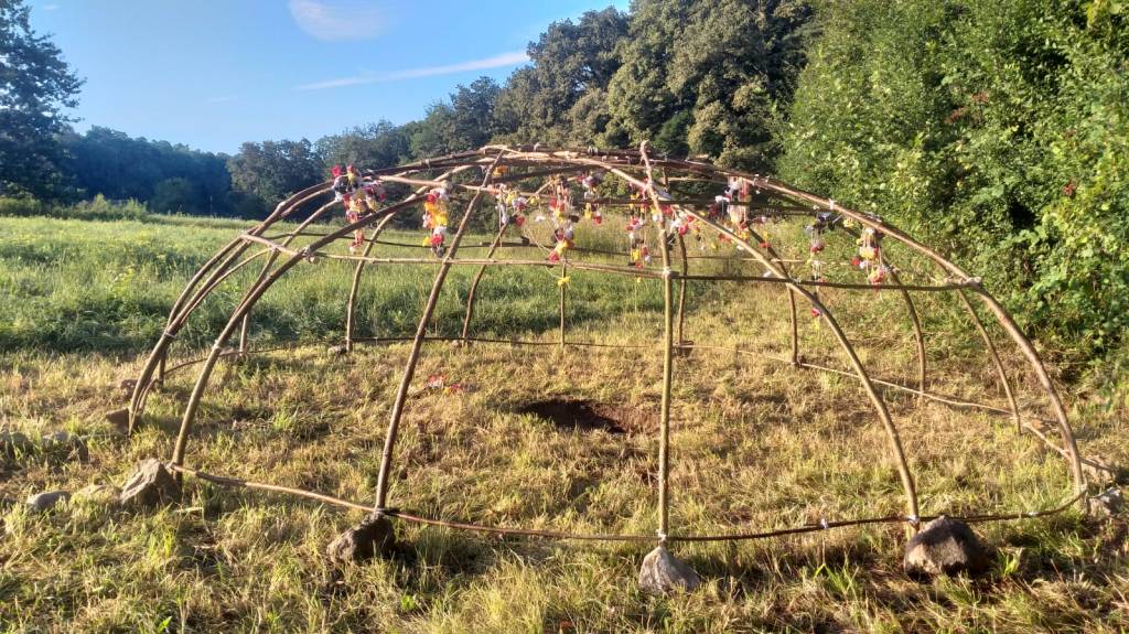 Ich sitze mit dreizehn weiteren Männern* in der stockdunklen engen Schwitzhütte. Sie ist so niedrig, dass ich nicht aufrecht sitzen kann. Was für das Atmen, das hier ob der Hitze eh nicht leicht fällt, von Vorteil wäre. Doch Gregor, der Zeremonienmeister, erklärt, das das Absicht ist. So zu sitzen lehrt uns die Demut. Traditionell sei die Schwitzhütte der Lakota noch niedriger gebaut. Diese Höhe sei schon ein Zugeständnis an uns Europäer.